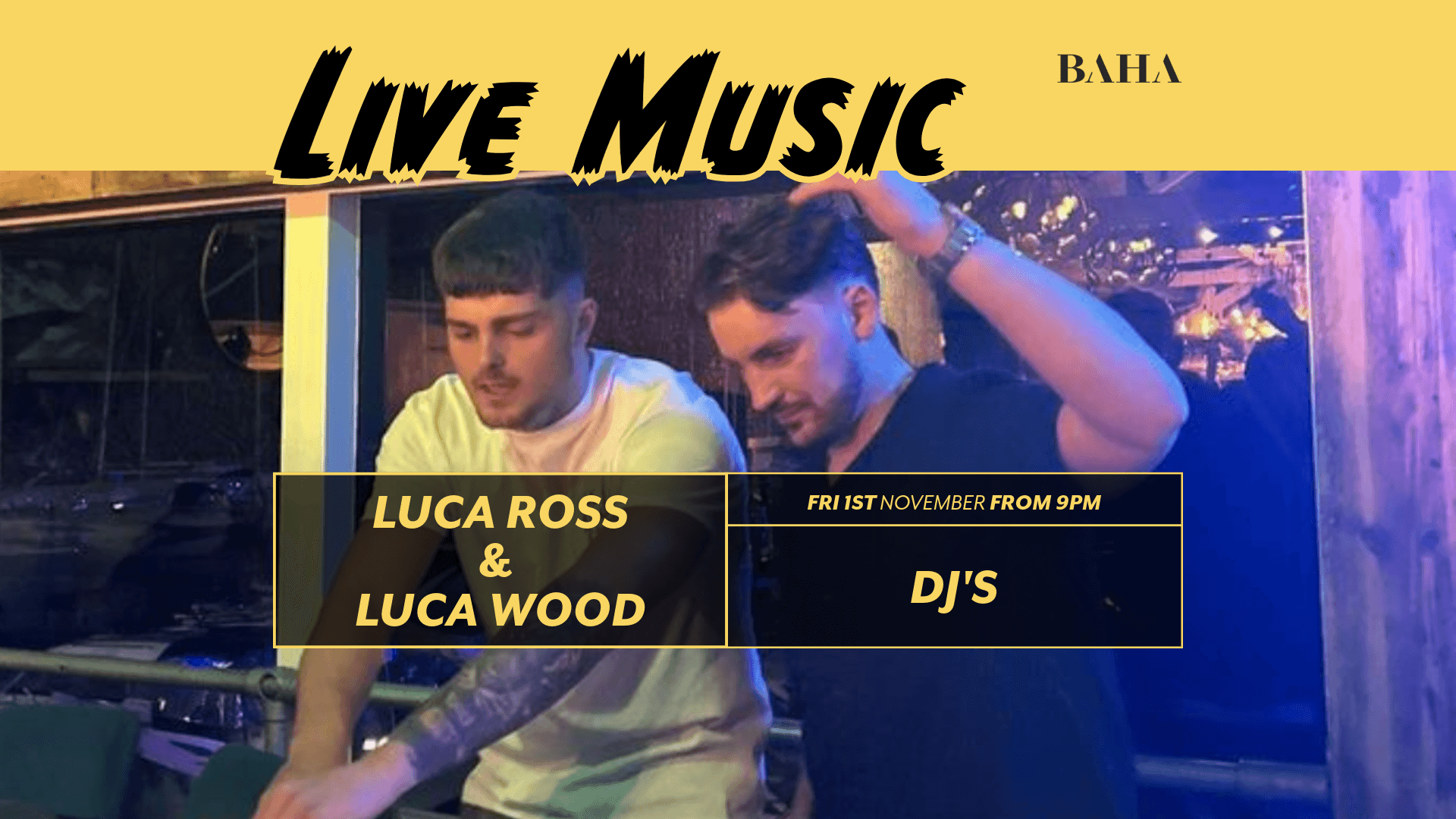 DJ Luca ross and wood Musical Journey at BAHA: November 1, 2024 at 9 PM - Free Entry in Bowness on Windermere