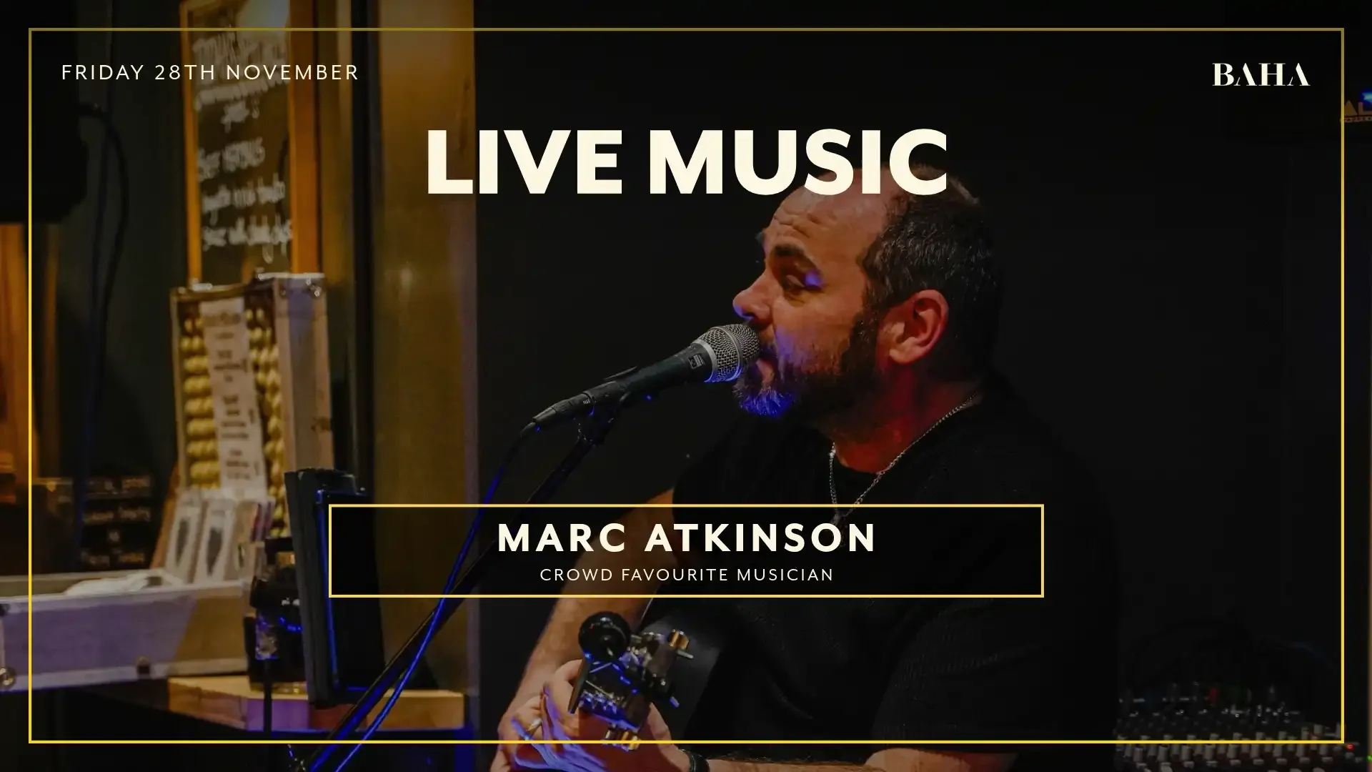 Get ready for an electrifying performance by Marc Atkinson at BAHA in Bowness on Windermere on 28 November 2025 at 9PM. BAHA is nestled in the heart of the Lake District on 18 Ash Street. Renowned for its unique blend of BBQ & Grill Restaurant cuisine, cocktail bar vibes and live music every Friday & Saturday night. Step in and take advantage of free entry to this exciting event in there vibrant venue 3 story venue. BAHA's exceptional atmosphere comes alive, especially during weekends, so don't miss this opportunity to experience a Lake District restaurant offering known to be the no.1 venue for live music.